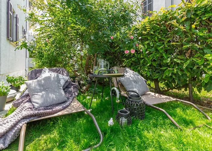 Ebben az apartmanban teraszt kínálnak, kilátással a kertre.